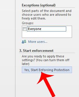 3. Adım: tıklayınDüzenlemeyi kısıtlaiçindeki düğmeKorumakŞeridin bölümü.