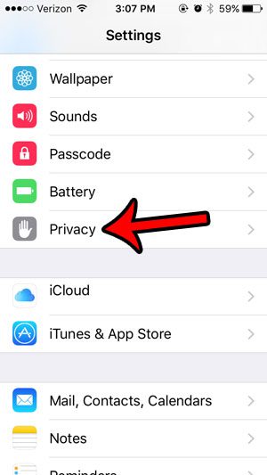 2. Adım: Aşağı kaydırın veMahremiyetseçenek.