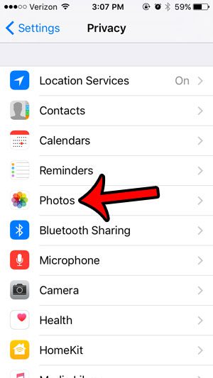 Bu kılavuz iOS 9.3'te bir iPhone 5'te gerçekleştirildi. Aynı adımlar, iOS 9 kullanan diğer iPhone modellerinde de çalışacaktır. Bir uygulamanın resimlerinize erişimini iptal etmenin uygulamanın bazı açılardan nasıl çalıştığını etkileyeceğini unutmayın. Ayrıca, uygulamada fotoğraflarınıza erişim gerektiren bir özellik kullanmaya çalışıyorsanız, fotoğraf erişimini yeniden etkinleştirmeniz istenebilir. Bunu etkinleştirmeye karar verirseniz, izni kaldırmak için her zaman bu adımları tekrar izleyebilirsiniz.