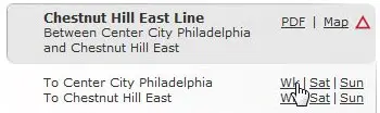 - GitProgramlarHattınız için sayfa, ardından durumunuz için geçerli olan bağlantıyı tıklayın. Örneğin, aşağıdaki resimde, bir hafta içi Chestnut Hill East Line'da Center City Philadelphia'ya seyahat etmek istiyorum. Bu, her istasyon için tüm durak sürelerini listeleyen yeni bir sayfa getirecektir. İstasyonunuzu bulun, sonra o istasyon adının sağındaki zamanlara bakın. Bunlar, trenlerin o istasyonda olacağı zamanları gösterir.