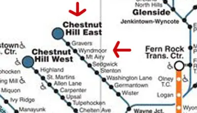 - Bölgesel demiryolu sayfasına gidin veTıklanabilir Bölgesel Demiryolu ve Transit HaritasıHangi bölgesel demiryolu hattını almak istediğinizi belirlemek için. Bir tren yakalamak istediğiniz istasyonun adını bilmeniz gerekecek, ancak bunu öğrendikten sonra çizginizi belirlemek kolaydır. Örneğin, haritanın merkezinde “Chestnut Hill East Line” ın bir parçası olan “Wyndmoor” istasyonu var.