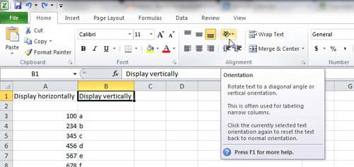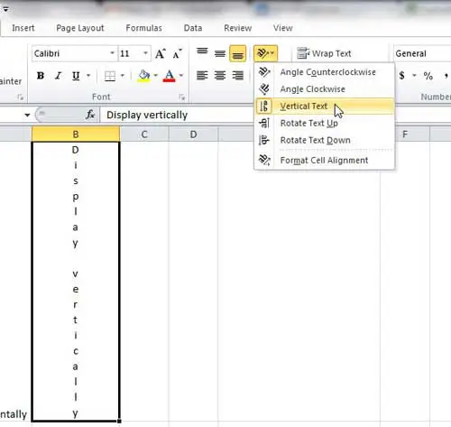 Daha önce de belirtildiği gibi, bu metin zaten oradaysa, metni hücre içinde dikey hale getirecektir. Hücre şu anda boşsa dikey olarak yazmanıza izin verecek şekilde hücreyi de ayarlayabilir.