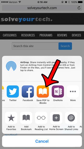 Kılavuzumuz, bu adımların resimleri de dahil olmak üzere bir iPhone'da PDF olarak bir web sayfasının nasıl kaydedileceği hakkında ek bilgilerle devam etmektedir.