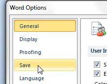 4. Adım: TıklayınKaydetmekSol tarafındaki sütundaKelime Seçenekleripencere.