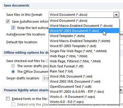 Word 2010'da varsayılan dosya kaydetme türü nasıl değiştirilir