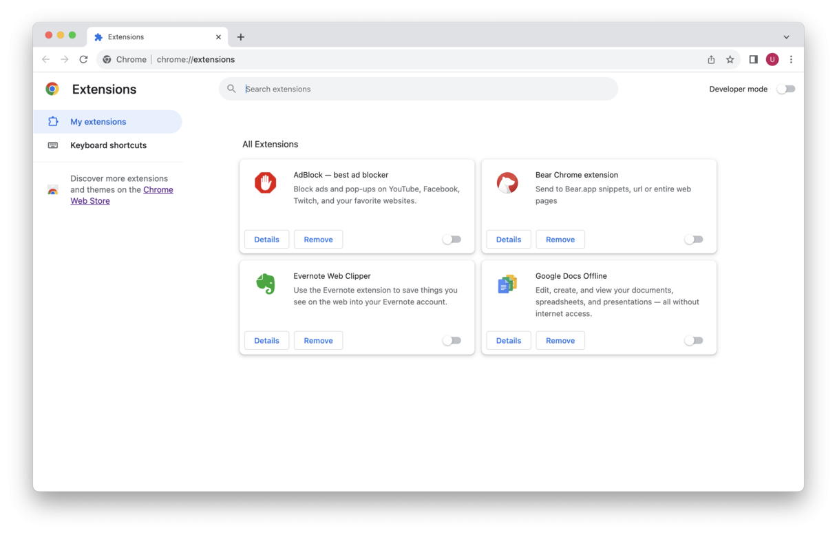 Penceredeki uzantılarınızı arayın ve tanımadığınız her şeyden Kaldır'ı tıklayın.