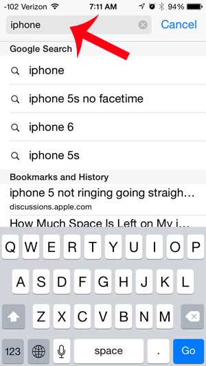 Adım 3: Ekranın üst kısmındaki adres çubuğunun içine dokunun ve sayfada bulmak istediğiniz arama terimini yazın.