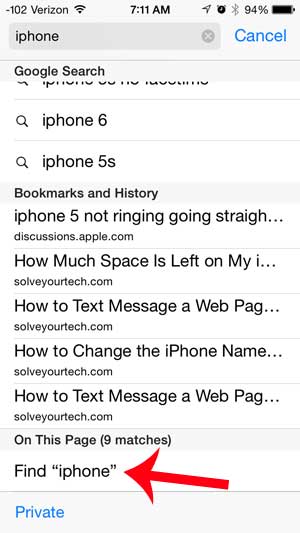 Neyse ki, iPhone'unuzda Safari Tarayıcısında, aradığınız bir kelime veya ifade için bir sayfayı taramanıza izin veren bir seçenek vardır.