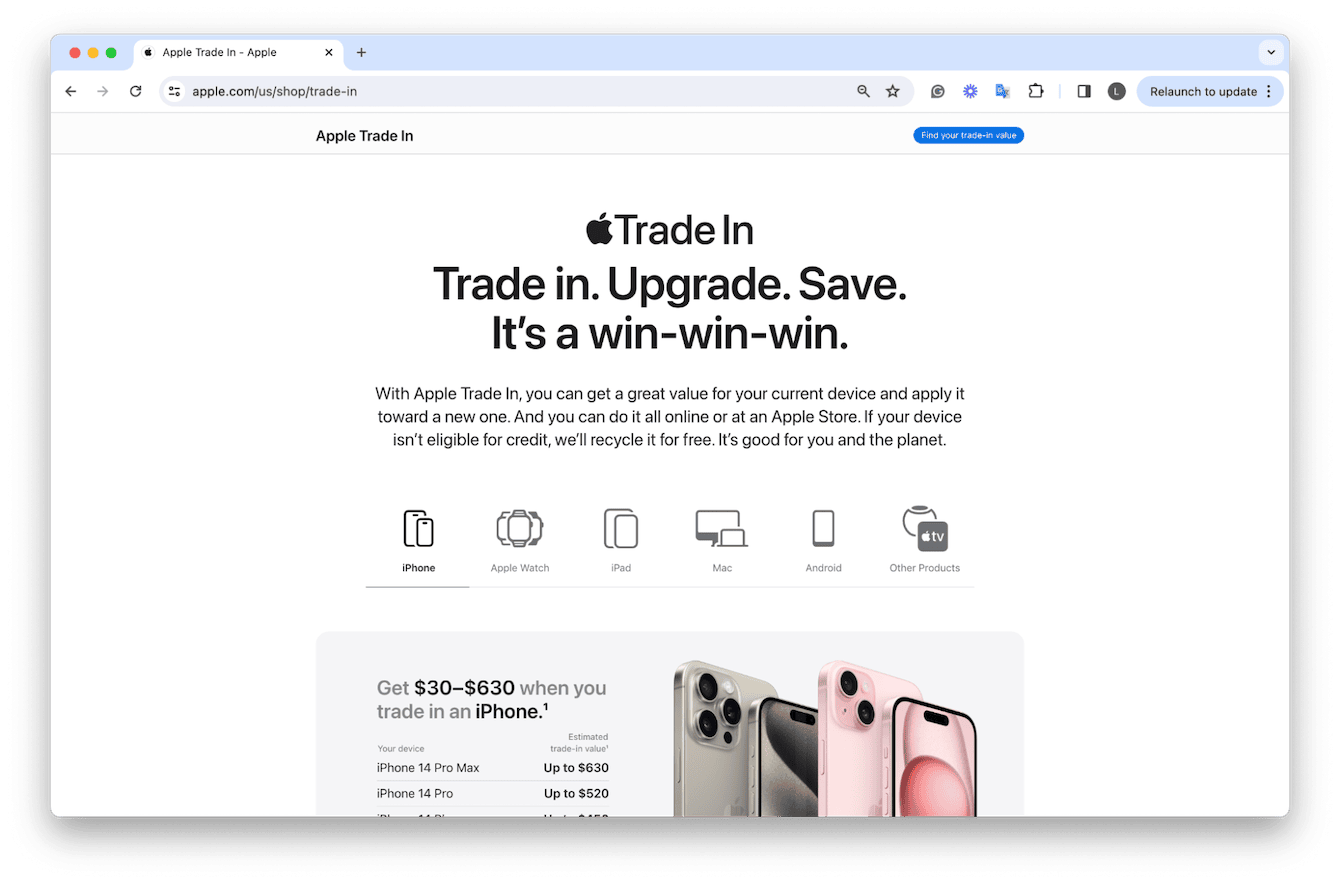 Apple takas programı genellikle güvenli bir seçenek olarak kabul edilir, ancak en iyi fiyatı alamayacağınız yaygın olarak bilinmektedir. Cihazınız için maksimumu elde etmek için muhtemelen özel olarak satmanız gerekir.