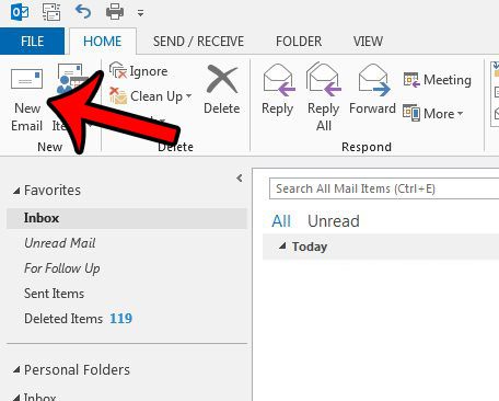 2. Adım: tıklayınYeni E -postaŞeridin sol tarafındaki düğme.