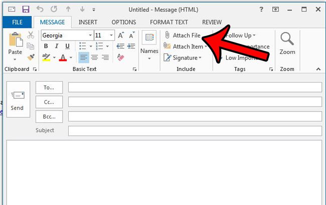 Adım 3: Yeni e -posta mesajının gövdesine tıklayın, ardındanDosya Ekledüğme.