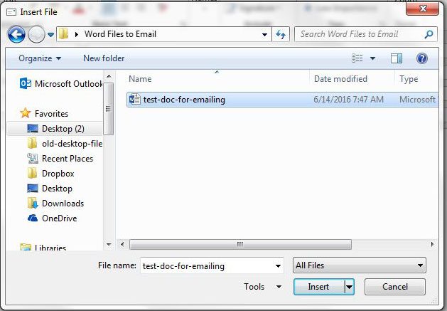 Adım 4: E -postanızın gövdesi olarak kullanmak istediğiniz kelime belgesine göz atın, ardından seçmek için bir kez tıklayın.