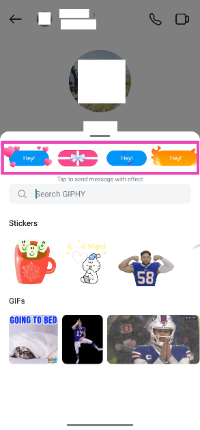 Mesajı metin kutusuna yazın, büyüteç simgesine basın ve üst sıradan özel bir efekt seçin. Özel efektler uzun mesajlar için işe yaramaz.