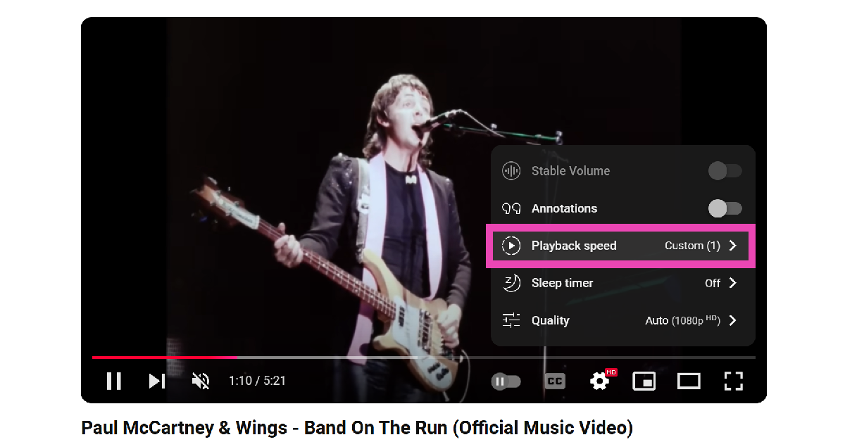 YouTube'da nasıl özel bir oynatma hızı ayarlarım?