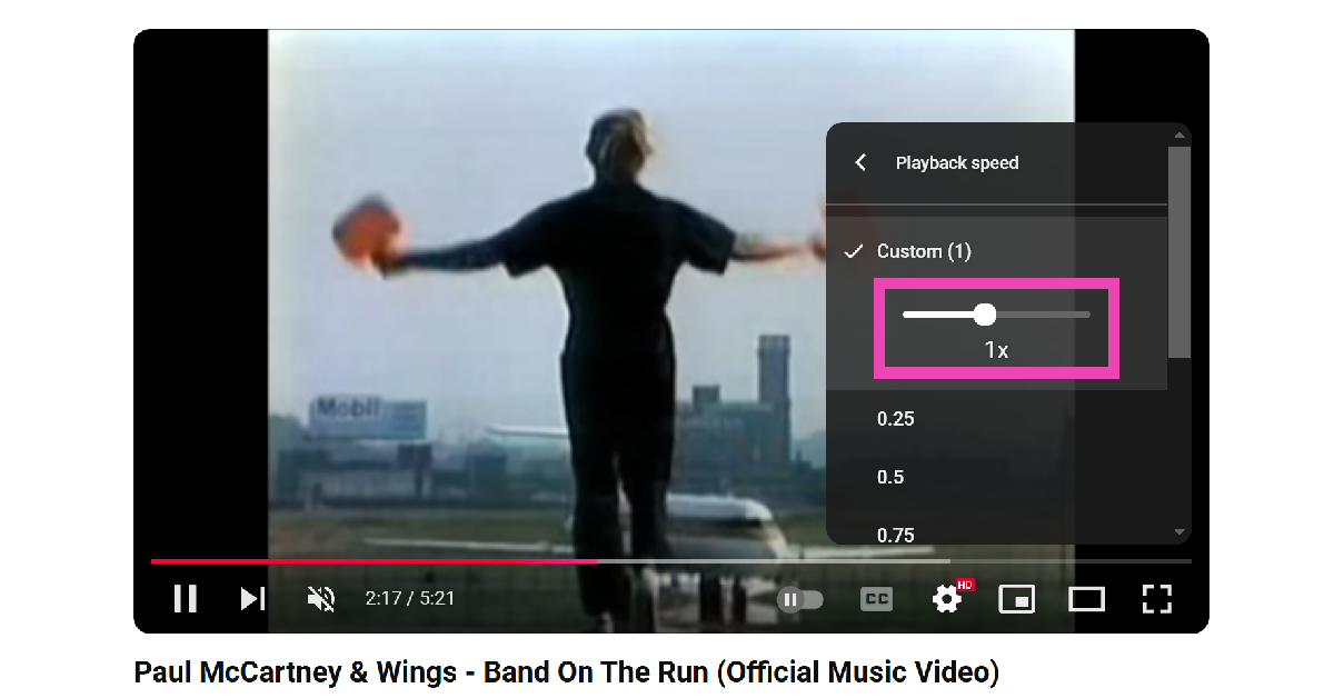 4. Adım:Kullanınkaydırıcıaltında 'GelenekBir oynatma hızı belirlemek için0.25x ve 2x.