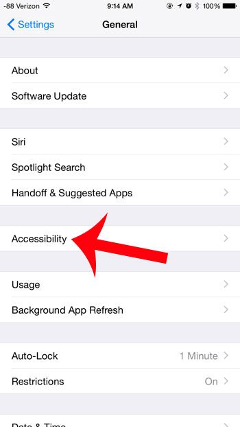 3. Adım: Aşağı kaydırın veErişilebilirlikseçenek.