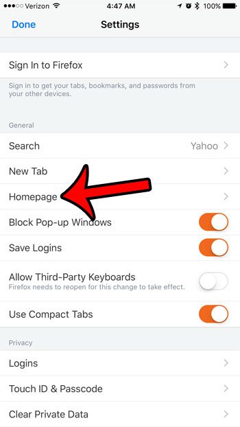 Eski Yöntem - iPhone 7 uygulamasında Firefox ana sayfası nasıl değiştirilir (resimlerle kılavuz)