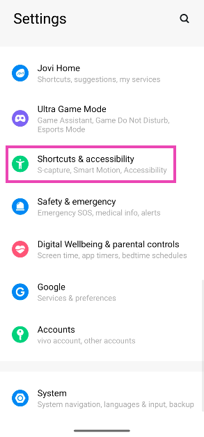 1. Adım:Gidip gelmekAyarlarve seçKısayollar ve erişilebilirlik.