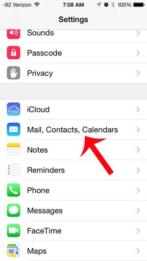 2. Adım: Aşağı kaydırın vePosta, Kişiler, Takvimlerseçenek.