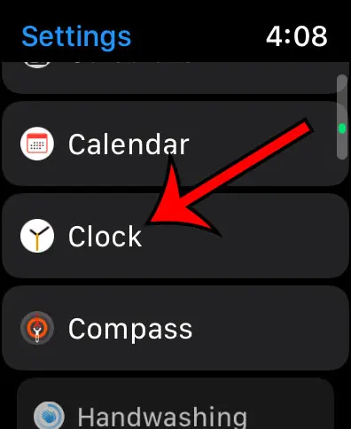2. Adım: Aşağı kaydırın ve seçinSaat.