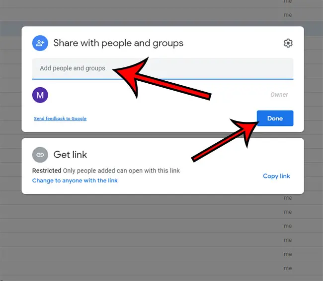 Adım 4: Dosyayı paylaşmak istediğiniz kişinin adını yazın, ardından Bitti düğmesini tıklayın.