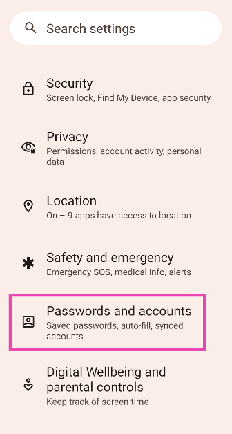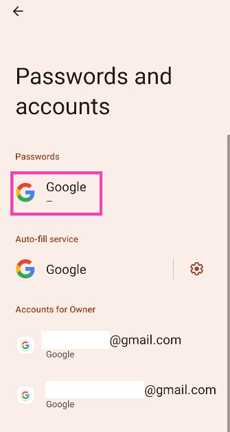 2. Adım:DokunGoogle HesabıŞifreler altında.