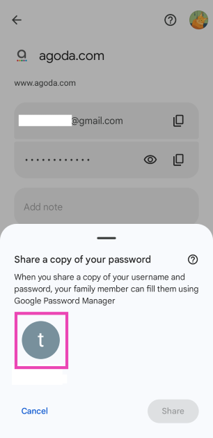 Adım 5:Seçinaile üyelerişifreyi paylaşmak istediğinizle.