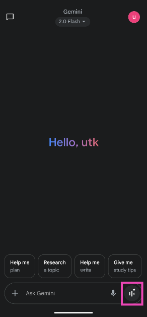 2. Adım:Dokundalga formu simgesiGemini Live'a erişmek için ekranın sağ alt köşesinde.