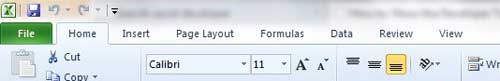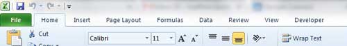 Microsoft Excel 2010'daki varsayılan sekme yapılandırması şuna benziyor -