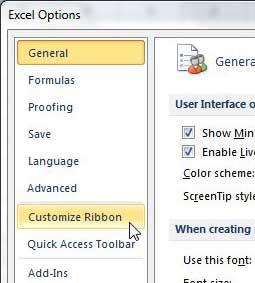 Adım 3: TıklayınŞeridi özelleştirSol tarafındaki sekmeler listesindenExcel Seçenekleripencere.