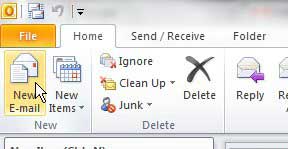 2. Adım: tıklayınYeni e-postaBu mesajı göndermeyecek olmanıza rağmen, mesaj penceresini açmak için düğme. Yalnızca BCC adresleri ekleyebilmek için yapılandırmanız gereken ayarı içerir.