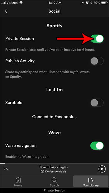Artık bir iPhone 7'de Spotify'da özel bir oturuma nasıl başlayacağınızı bildiğinize göre, Spotify'daki diğer kişilerin ne dinlediğinizi görebilmesini istemediğiniz her zaman bu seçeneği bulabilir ve değiştirebilirsiniz.