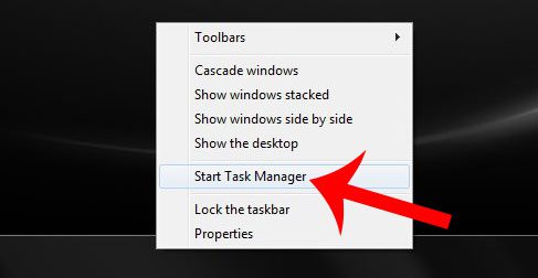 Adım 1: Google Chrome'un kapalı olduğundan emin olun, ekranınızın altındaki görev çubuğunu sağ tıklayın, ardından tıklayın.Görev yöneticisini başlatseçenek.