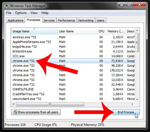 3. Adım: A'ya tıklayınchrome.exe *32işlem, tıklayınSon işlemPencerenin sağ alt köşesindeki düğme, ardından işlemi bitirmek istediğinizi onaylayın. Her ek için bu adımı tekrarlayınchrome.exe *32gördüğünüz süreç.