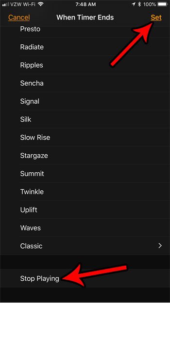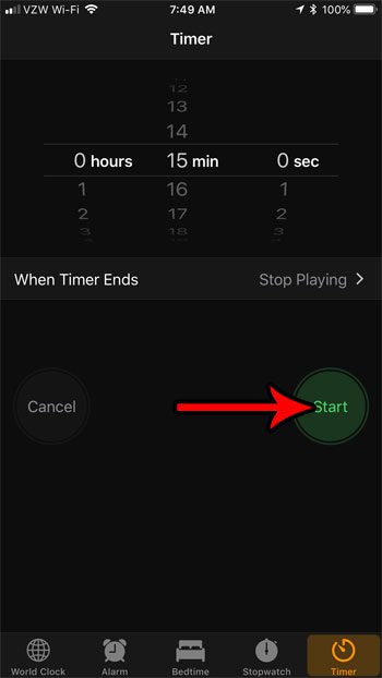 İPhone zamanlayıcısının, zamanlayıcı süresi dolduktan sonra cihazın bir şeyler oynamayı bırakmasını söyleyebileceğiniz bir ayara sahiptir.