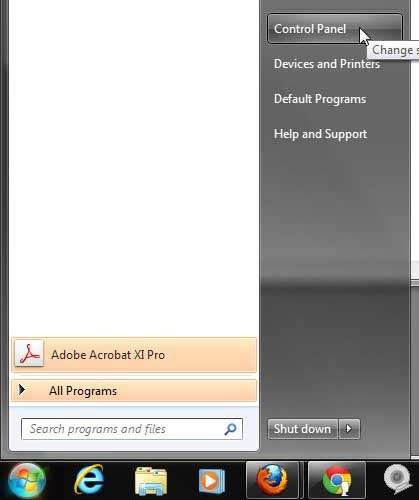 - TıklamakBaşlangıç, Daha sonraKontrol Paneli.