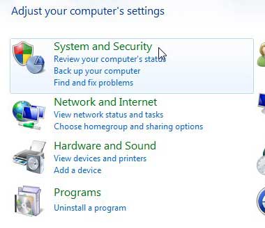 Başlat'ı tıklatın, ardından Kontrol Paneli2. Adım: tıklayınSistem ve güvenlikekranın ortasında seçenek.