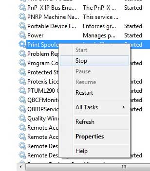 Hizmetler seçeneğini çift tıklatınAdım 5: aşağı doğru kaydırınMakarıyı yazdırınSeçenek, sağ tıklayın, ardındanDurmakseçenek.