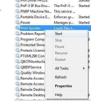 Baskı Makaralı Seçeneğini Sağ Tıklayın, ardından Durdur'u tıklayınAdım 6: Baskı makarasının durması için birkaç saniye bekleyin, ardından tekrar sağ tıklayın veBaşlangıçseçenek.