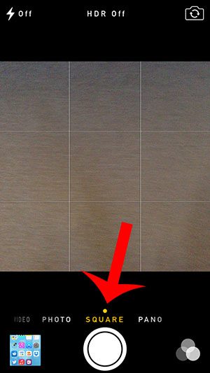 2. Adım: Toksayın ve parmağınızı tutunFotoğrafseçenek, daha sonra geçmek için sola kaydırınKareseçenek. Bu değişikliği yaptıktan sonra vizörün şeklinin bir dikdörtgenden kareye geçtiğini not edeceksiniz.