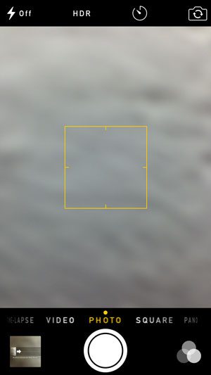 2. Adım: yazan seçeneği bulunBuradasonra farklı bir kamera modu seçmek için parmağınızı bu kelimede sağa kaydırın. Bir iPhone 5'te bulunan seçenekler arasında hızlandırılmış, video, fotoğraf, kare ve pano yer alıyor. Normal resim moduna dönmek içinFotoğrafseçenek.
