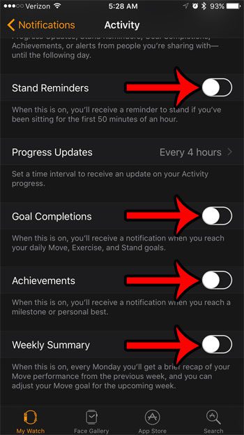Şimdi Apple Watch'taki etkinlik uygulamasından bildirim almayı bırakmalısınız.