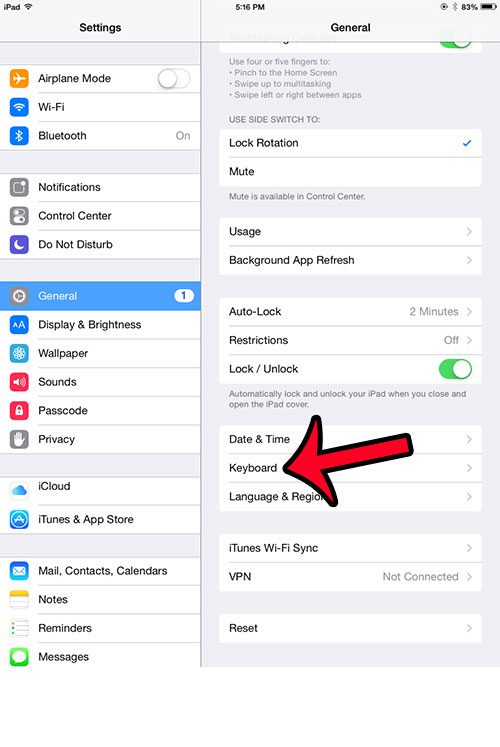 - 3. Adım: Aşağı kaydırın veKlavyeSağ panelden seçenek.