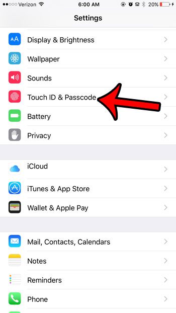 2. Adım: Aşağı kaydırın ve dokununDokunma Kimliği ve Parolaseçenek.