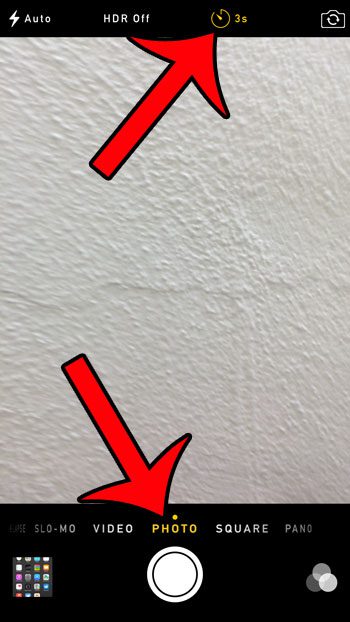 2. Adım: seçinFotoğrafEkranın altındaki seçenek, ardından ekranın üst kısmındaki saat simgesine dokunun. Her ikisi de söyleyecek3sveya10sZamanlayıcı açıldığında saat simgesinin yanında.