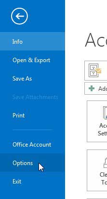 Dosya sekmesini tıklayınAdım 3: TıklayınSeçeneklerpencerenin sol tarafındaki sütunda,Outlook Seçenekleripencere.