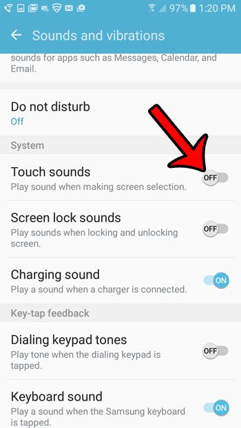 4. Adım: Aşağı kaydırın ve dokununDokunma SesleriKapatmak için düğme.