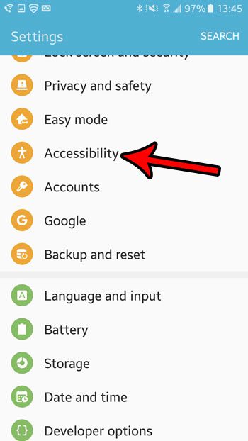 Adım 3: Aşağı kaydırın ve seçinErişilebilirlik.