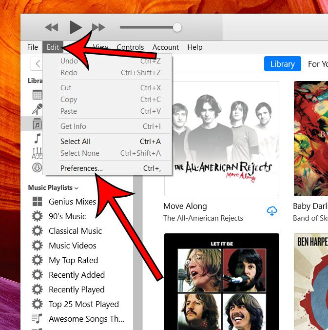 2. Adım: seçinDüzenlemekpencerenin üst kısmındaki sekme, ardındanTercihlerseçenek.