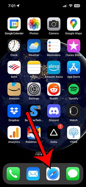 1. Adım: BulunSafariAna ekranınızdaki simgeye dokunmak ve tarayıcıyı açmak için.